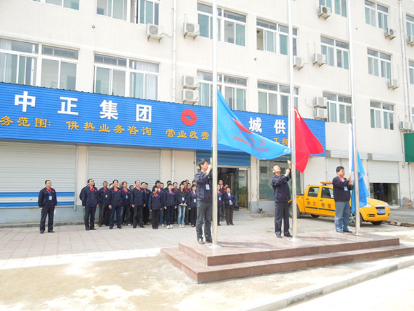 2012年4月28日,泰安市中正東城供熱有限公司辦公場(chǎng)所喬遷,現(xiàn)場(chǎng)進(jìn)行了隆重的首次升國旗、司旗儀式。集團(tuán)公司領(lǐng)導(dǎo)到場(chǎng)祝賀并對(duì)其現(xiàn)場(chǎng)環(huán)境整治情況進(jìn)行了檢查驗(yàn)收。