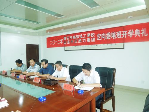 2012年9月12日上午10點整,山東中正熱力集團與泰安市高級技工學校聯(lián)合辦學定向委培班開學典禮在市高級技校會議室順利舉行,由市高級技校副校長徐東岳擔任主持,市高級技校黨支部副書記董軍、機械系教務處副主任張永生、集團總經(jīng)理助理、泰安東城公司經(jīng)理許宏建、綜合部主任李體民參加了典禮。開學典禮上董書記、許經(jīng)理作了重要講話,對校企聯(lián)合辦學給予高度肯定,對第一期定向委培的同學們寄予厚望。